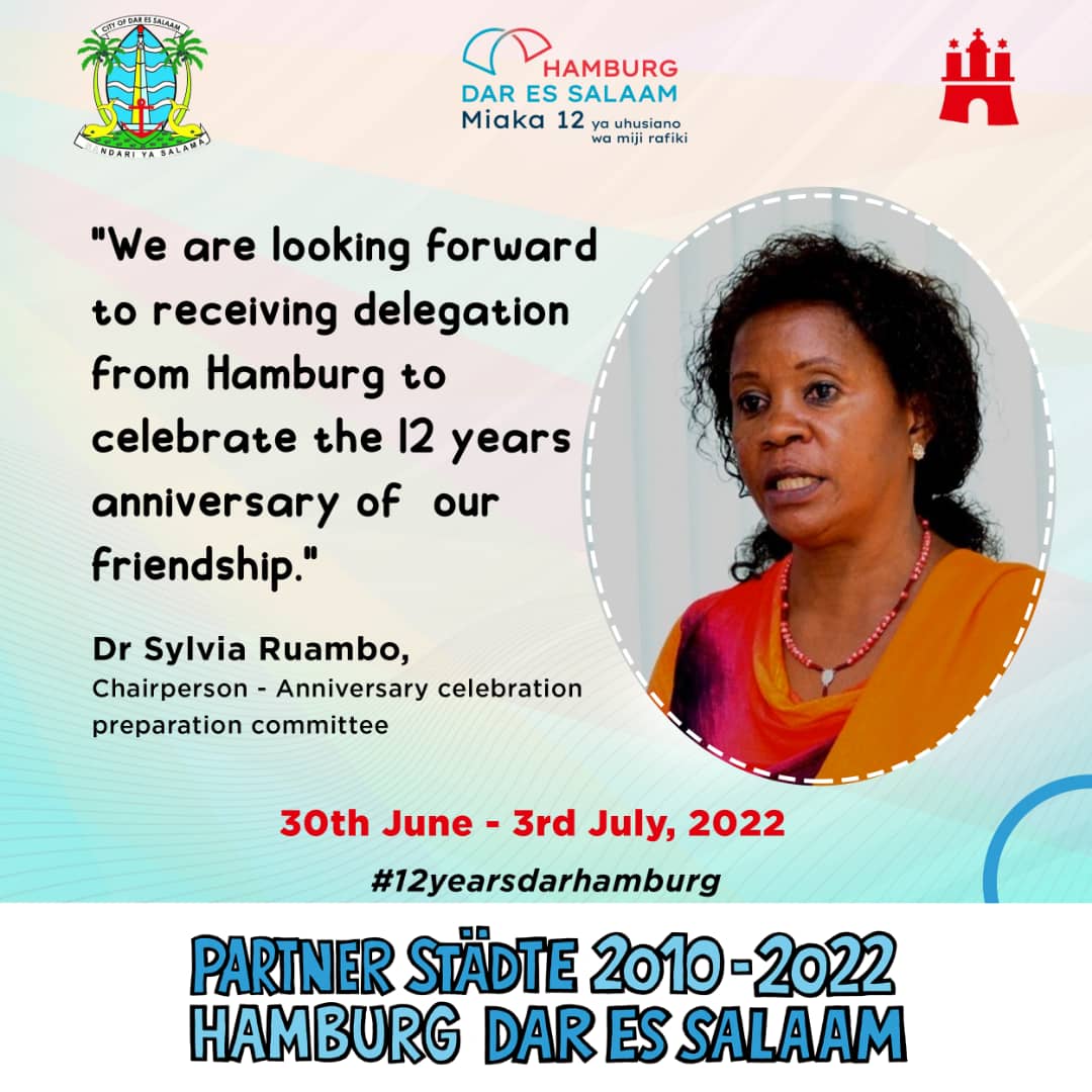 Vom 30.06. bis zum 4.07.22 feierten wir gemeinsam mit unseren Partnern Das Festival der Städtepartnerschaft in Dar es Salaam Unser Partnerschaftsabkommen wurde am 1. Juli 2010 unterzeichnet und ist damit heute 12 Jahre alt. Das 10jährige Jubiläum konnte aufgrund der Corona Pandemie leider nicht gebührend gefeiert werden. Umso mehr