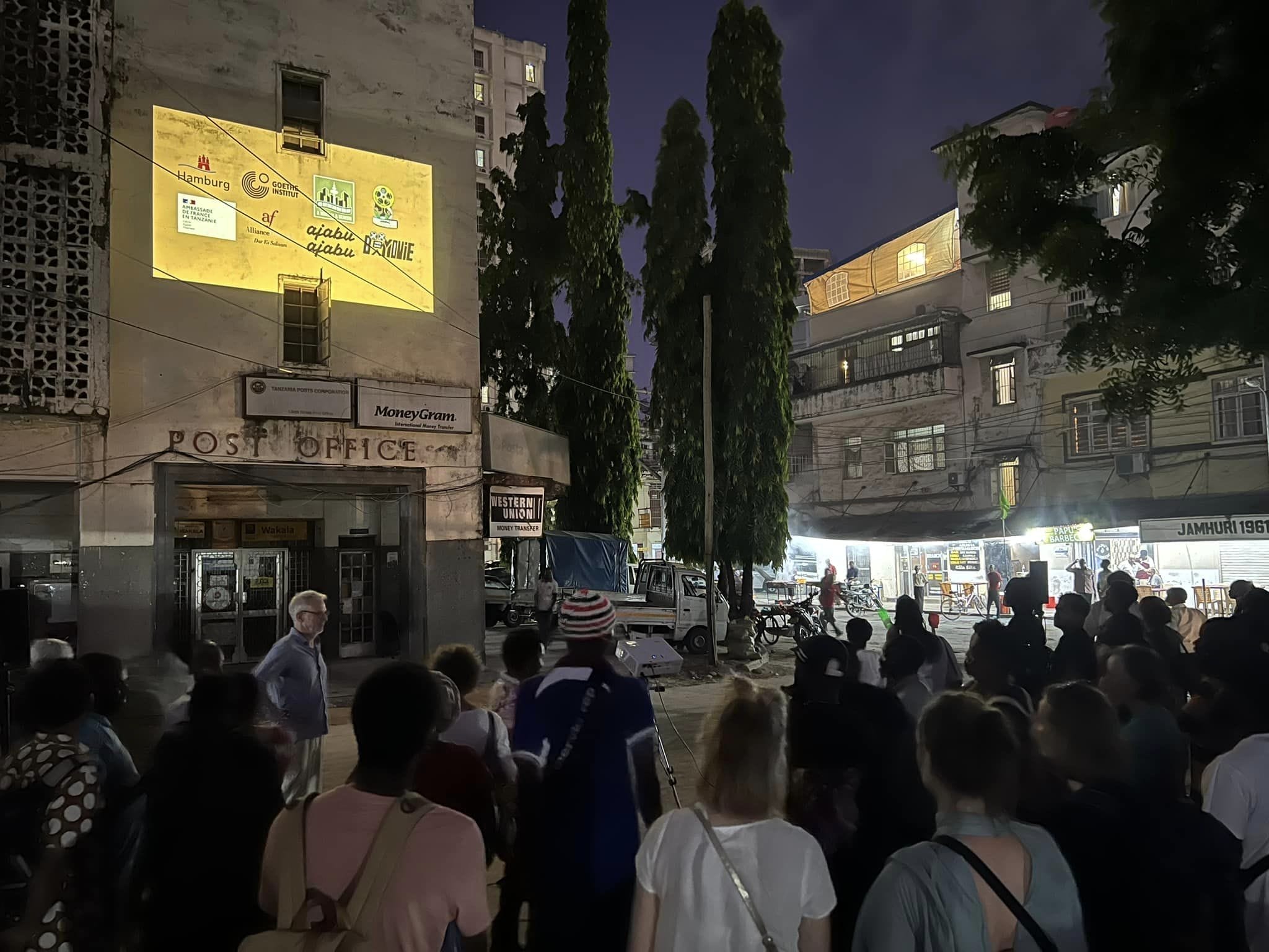 A Wall is a Screen transforms facades and other structures into screens, creating an original, thought-provoking and always entertaining new look at the city’s architecture. In 2023, A Wall is a Screen organised a site-specific short film tour in Dar-es-Salaam and a three-day workshop in collaboration with ajabu ajabu and with the support of the Goethe-Institut. There too, of course, free of charge, non-commercial and open to all.