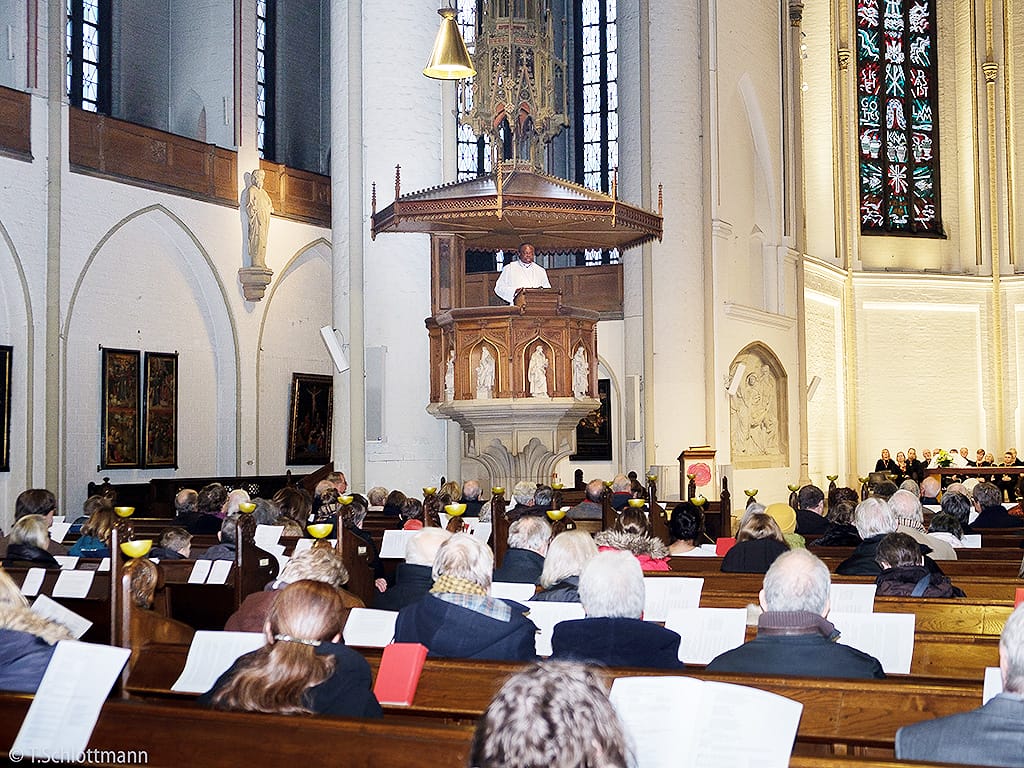 Guest of honor Bishop Dr. Alex Gehaz Malasusa from Dar es Salaam delivered the sermon. Other guests were Mr. Pörksen, State Councillor, and Mrs. Hammelmann, Consul of Tanzania in Hamburg. Lead pastor Dr. Jens-Martin Kruse (St. Petri) and pastor Katharina Davis (ZMÖ) led the service.