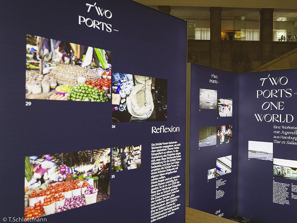 Die Fotoausstellung »Two Ports – One World« ist ein erster Versuch, sich in mit Partnern aus anderen Hafenstädten zu vernetzen und die Perspektive junger Menschen auf den Hafen und seiner Rolle in der Gegenwart zu präsentieren. Zwischen der Hansestadt Hamburg und Dar es Salaam besteht seit zehn Jahren eine Städtepartnerschaft, die zugleich die einzige auf dem afrikanischen Kontinent ist.