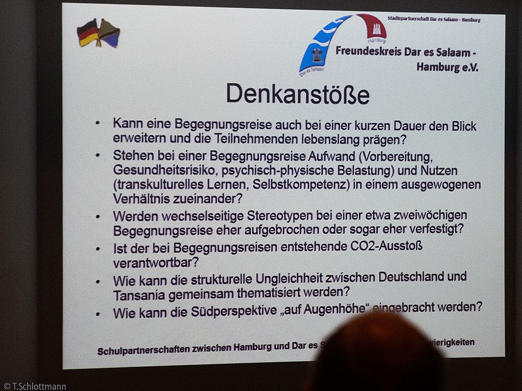 Im Jahre 2010 wurde der Partnerschaftsvertrag zwischen den Städten Dar es Salaam, der wirtschaftlichen und administrativen Metropole von Tansania und Hamburg von den beiden Bürgermeistern unterzeichnet. Unsere beiden Städte verbindet eine lange Geschichte. Eine Städtepartnerschaft lebt aber erst, wenn nicht nur die Bürgermeister, sondern auch die Bürger der beteiligten Städte sich einbringen und den Partneraustausch vorantreiben.